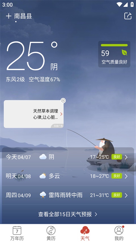 4、天气预报:提供15日天气预报、24小时天气趋势、实时空气质量及恶劣天气预警,天气动态一手掌握;