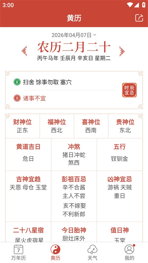 2、传统老黄历:提供传统的老黄历查询,提供择吉日待功能,可查询当日宜忌、时辰宜忌等等,是您为嫁娶、乔迁、开业等重大活动选择吉祥日子的好帮手;