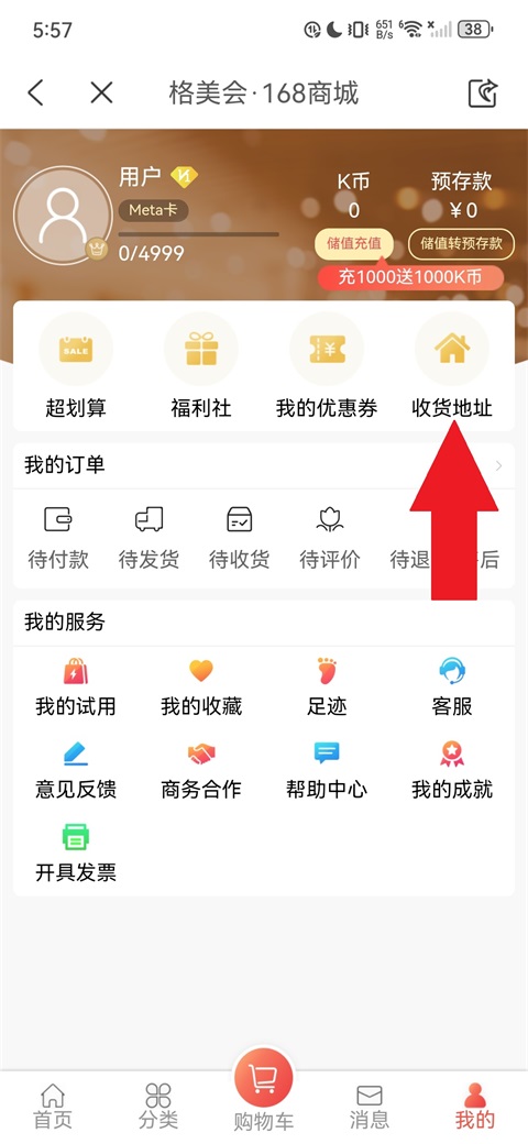 3、在我的页面,点击"收货地址";