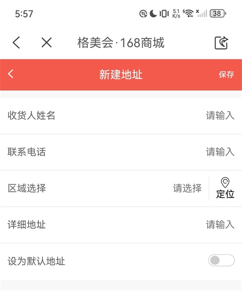 按需开启"设为默认地址",点击右上角的"保存",即可完成地址添加。