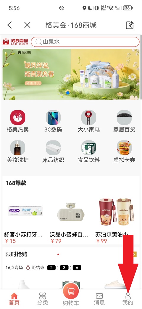 2、进入168商城后,点击右下角的"我的";