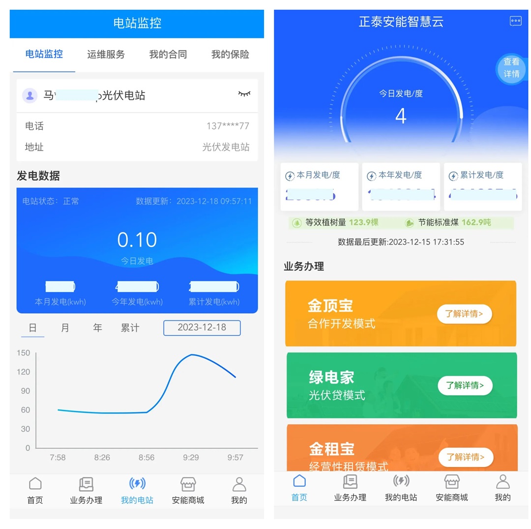 用户可远程实时监控电站发电数据,查看电站健康度,理论发电量对比和历史数据查询,附近电站功率对比,电站设备管理;自动识别发电异常电站!