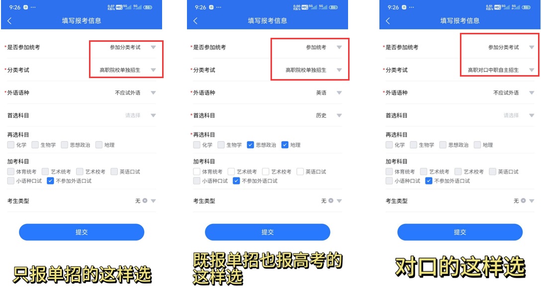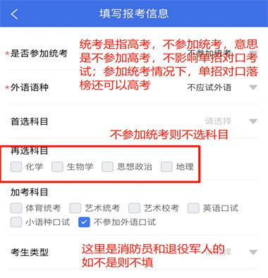 更改“不参加统考”选项为“参加分类考试”,并新增分类考试细分项。更改报名登记表生成逻辑。