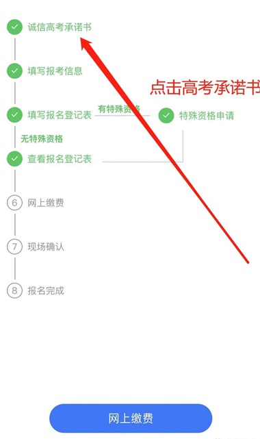 按要求上传照片 → 完成网上缴费 → 点击【现场确认】 → 携带相关材料到报名点进行现场确认(户籍地的招生考试院,县城一般在教育局),即可完成报名。
