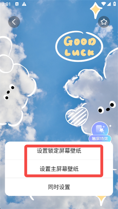 3、你可以选择将其设置为主屏幕壁纸或锁屏壁纸,也可以同时设置;