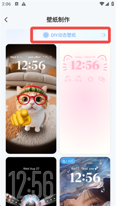 2、然后点击【DIY动态壁纸】;