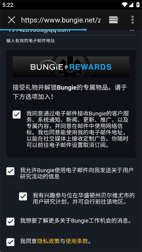 创建完成后,在图示位置填写你的电子邮件地址,同意使用条款,点击【创建个人资料】,即可完成登录。