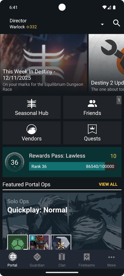 检查你最喜欢的武器和盔甲,查看物品统计和特技,并在你的角色和金库之间移动你的装备。从邮政局长那里取回丢失的物品,而不必前往塔楼!查看您的胜利、收藏、统计跟踪和游戏历史。