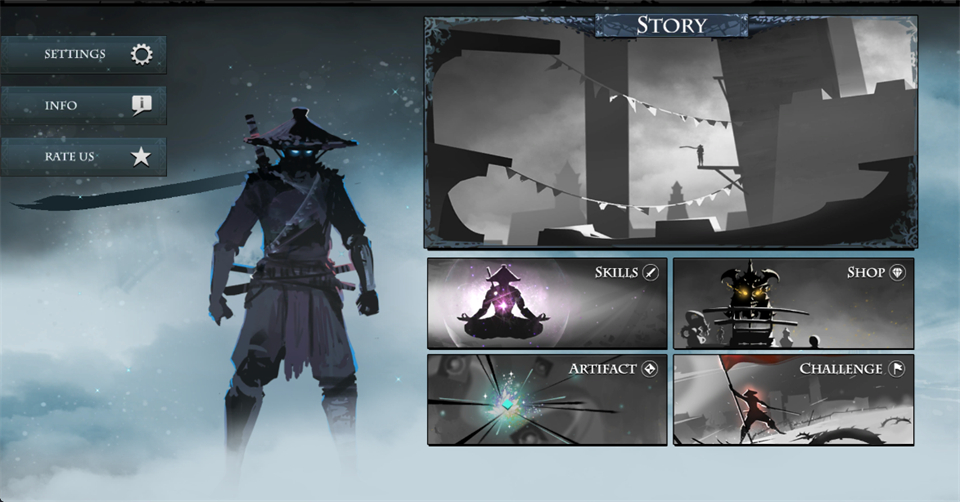 游戏还加入了RPG元素,技能树和神器系统让角色培养变得有趣。比如龙马之剑可以穿透敌人,黄金手里剑能提高暴击率,这些装备让你在战斗中更有优势。还有些装饰性神器,比如AKUMU可以改变忍者岚的外观,挺有意思的。