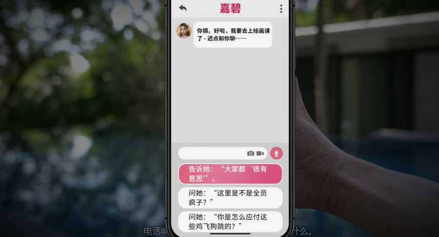 4、选择【告诉她:“大家都‘很’有意思。”】,嘉碧+5