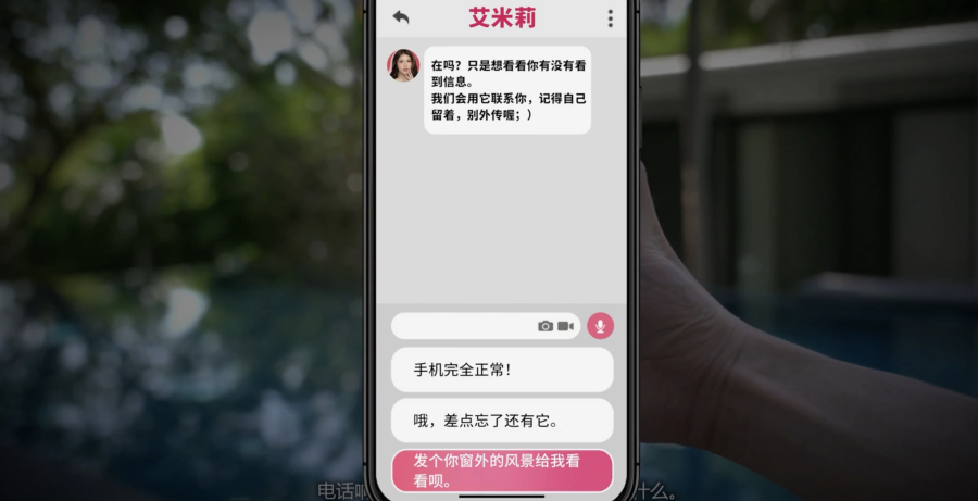 2、选择【发个你窗外的风景给我看看呗。】,艾米莉+5。
