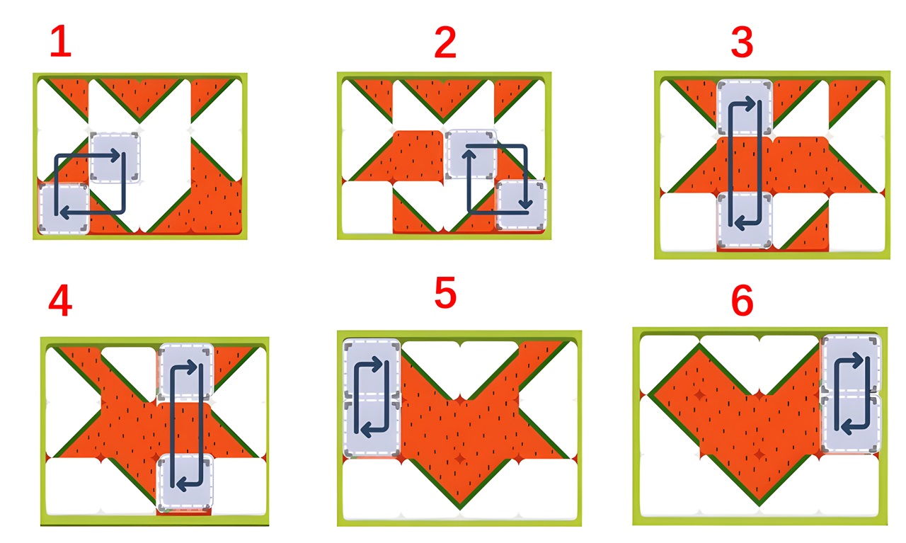 6、最后,把黄色寿司放到第一排的第一个位置,完成关卡。