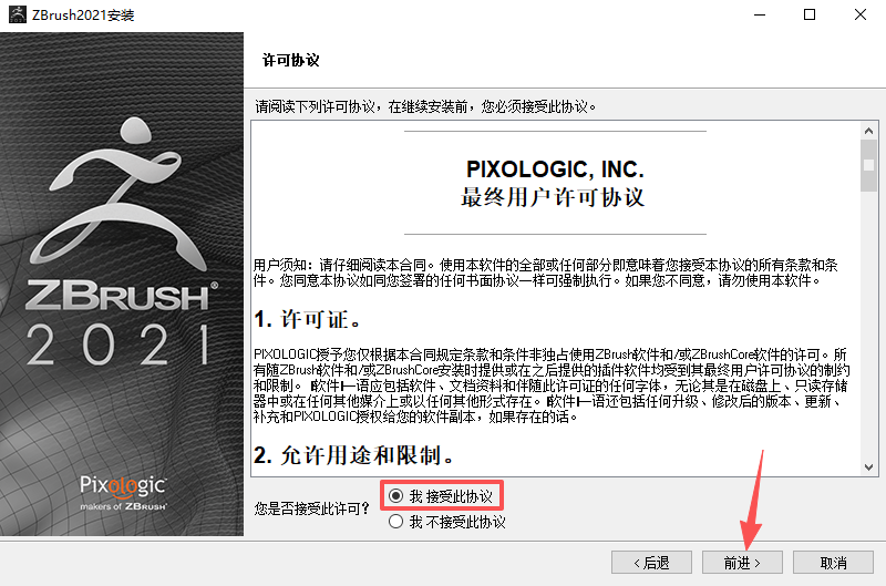 1、双击运行【ZBrush_2021.7.1_Installer.exe】安装程序。