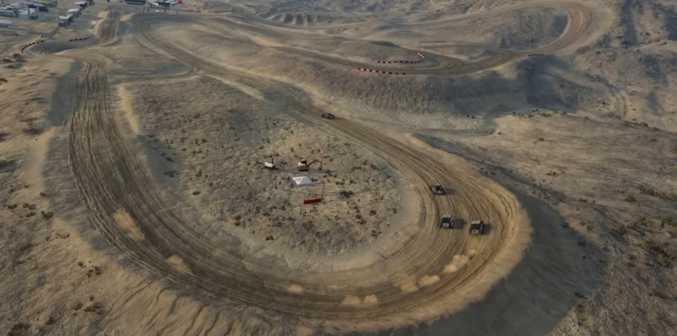 地图上也有大量泥土赛道和大量丘陵地形,正如预期的那样,你可以在这里测试越野技巧。虽然这张地图没有太多建筑可供探索,但仍有一些峡谷和小型前哨站可供探索。