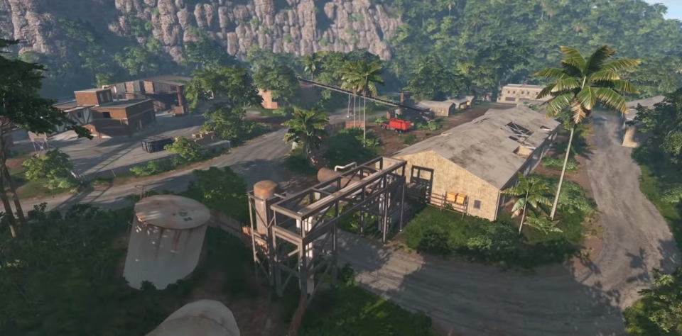 丛林岩岛是一张设定在茂密丛林中的地图。虽然看起来不是最深入的地图,但里面仍有许多内容可供探索。这里有许多废弃的建筑和掩体,这让许多玩家对这张地图的背景故事进行了推测,并猜测它是如何形成这样的。