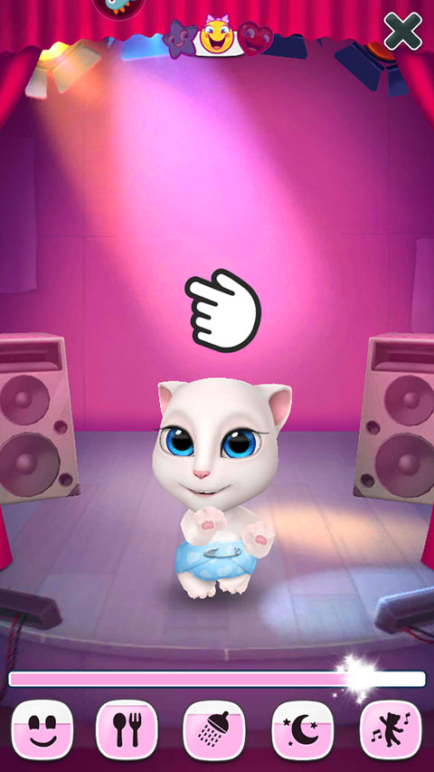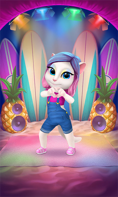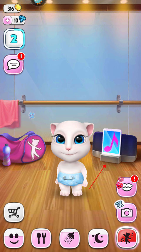 跳舞功能也超棒!进入音乐店选一首歌,跟着节奏滑动屏幕就能让安吉拉跳舞。跳得越好积分越高,还能解锁新服装。不过跳舞会消耗体力,记得玩之前要先把能量充够哦!