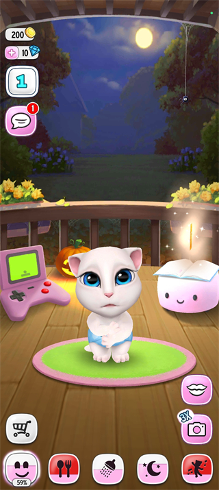 首先,游戏里的日常照料特别真实又治愈。你需要按时喂食、刷牙、洗漱,甚至哄睡安吉拉。每次互动都会影响她的情绪,如果你冷落她,她会闹别扭;如果好好照顾她,她还会用甜甜的声音重复你说的话,真的超级可爱。