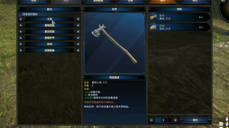 3、要制作物品,按下"C键"打开制作菜单,从列表中选择可制作物品,然后按下"制作"按钮即可;