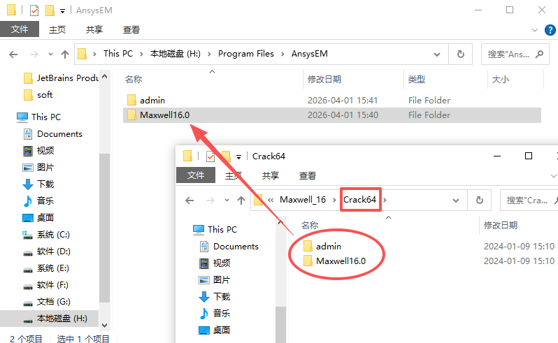 21、将【Crack64】文件夹下的补丁复制至【AnsysEM】目录下。