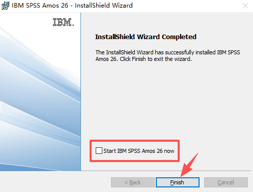 7、取消勾选【Start IBM SPSS】,点击【Finish】。