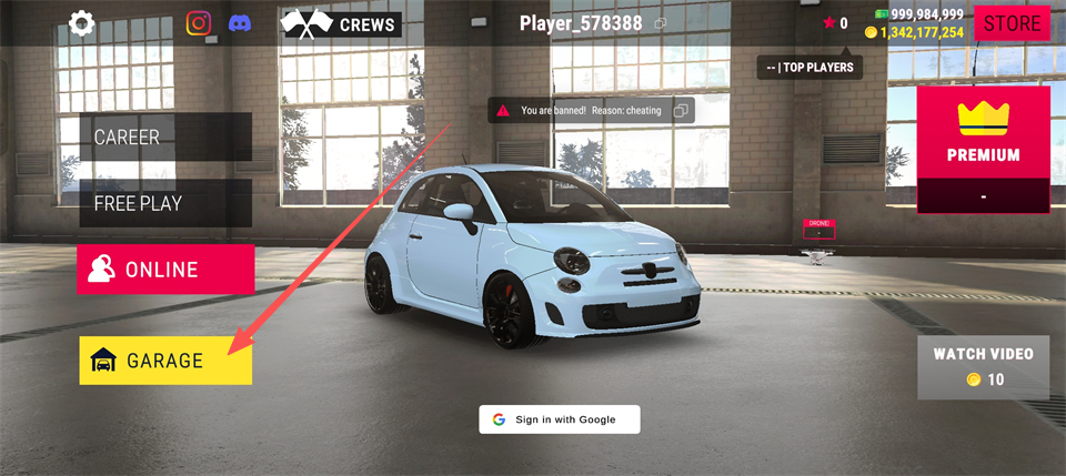 1、打开真实驾驶学校破解版游戏,点击【GARAGE】