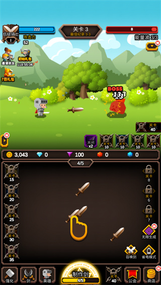游戏中提升战力的方法多样:制作更高级武器、强化属性、升级技能都是关键。金币和钻石用于购买技能,而这些资源只能通过击败敌人获得。装备也很重要,玩家可以去地下城挑战关卡来获取强力装备。游戏还加入了多种元素,比如合成剑、收集服装、编队战斗等,极大丰富了玩法。
