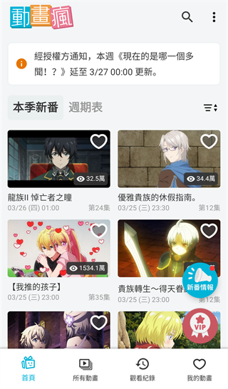 即时订阅提醒:订阅心仪动画后,最新集数上线将立即收到推送通知。