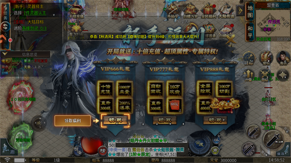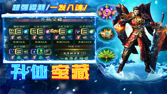 登录就送自动回收、全屏拾取、百万切割、专属称号,等级直升1000级,七日登录送全套特戒!