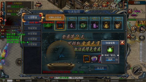 2、签到第一天送复活神戒,后续更有超多神器免费领。