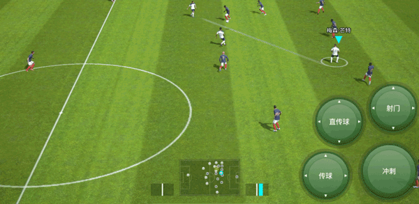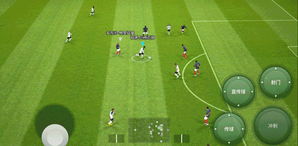 手动前插按下传球键后,向任意方向轻拂画面左侧,传球队员会沿直线向对方球门快速插上,这时可以打出二过一配合,而当球员拥有【单触传球】时,球员间的快速传接会更加精准