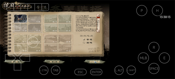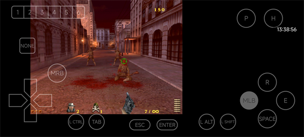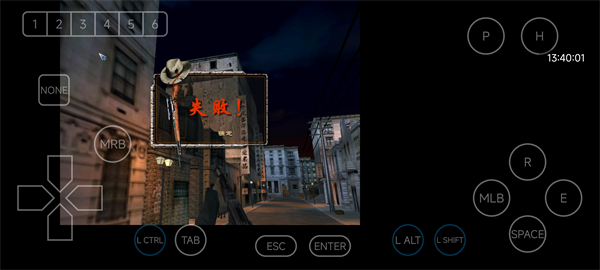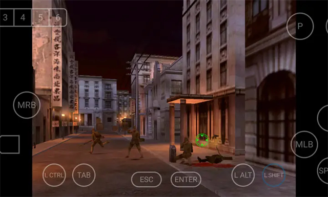 虚拟按键对应、MRB=鼠标左键(射击)、MLB=鼠标右键(换弹/开镜)、方向键=移动视角、SPACE=跳跃、ENTER=确认。