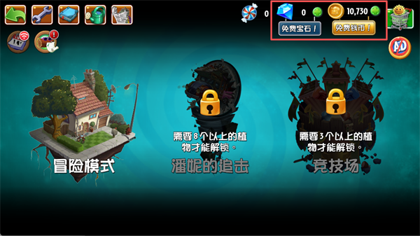 潘妮的追击:解锁至少8个以上植物后才能开启,适合在后期用来刷奖励和收集资源。