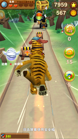 游戏中有丰富的角色养成系统,每个角色都有独特的技能和成长路线,还可以通过“萌宠系统”提升属性。不同的角色和萌宠组合能带来多种玩法,让玩家找到适合自己的策略。游戏中的道具如飞行器、磁铁等也为跑酷增添了更多乐趣。