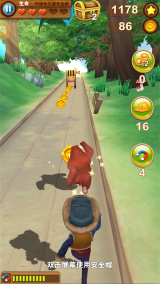 总的来说,《熊大快跑2018版》不仅还原了动画角色和场景,还加入了丰富的玩法和策略元素,让跑酷游戏变得更有深度。对于喜欢熊出没的玩家来说,这是一款不可错过的手游。我个人觉得这款游戏在操作上非常流畅,道具设计也很有趣,特别是磁铁道具特别实用,能帮助收集更多金币。如果你是熊出没粉丝或者喜欢跑酷游戏,这款绝对值得一试!