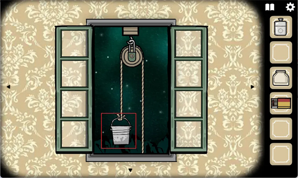 左边的窗有绳子,我们把水桶系上去,于是得到装满水的水桶