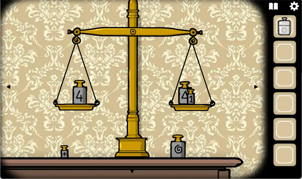 而我们在房间另一个角落发现,箱子上面的符号恰巧对应这些秤砣上的图案,我们将箱子调至对应内容获得了一把刀