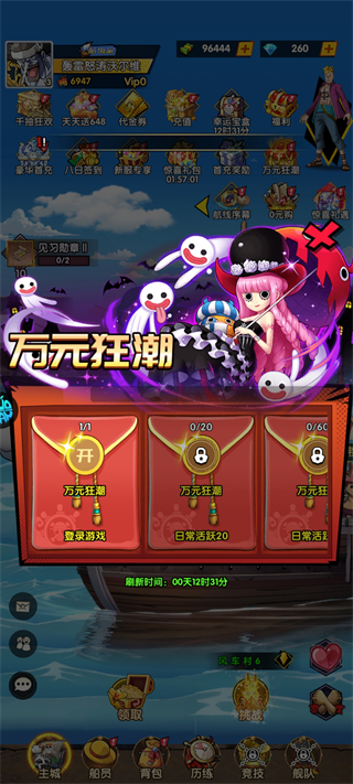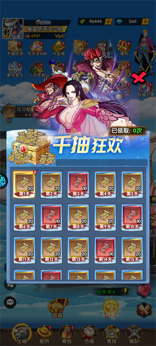3、千抽狂欢盛宴!1000连抽任选绝品船员,进阶升战力秒变海上霸主!