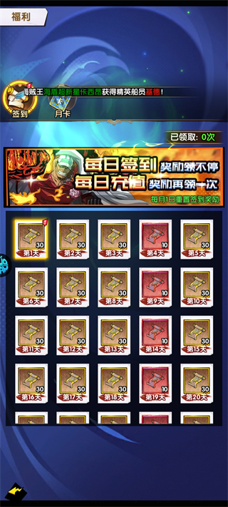 累计登录可领取超大量集结卷轴(累计超千抽),是零氪玩家获取抽卡资源、抽取强力船员的核心活动。