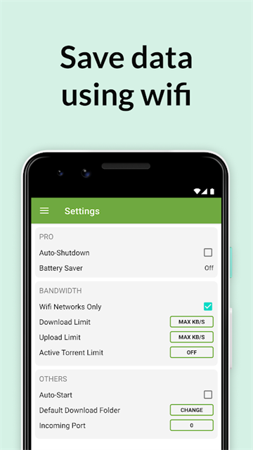 ✔为了获得最佳性能并避免在移动电影和音乐下载时消耗大量数据费用,我们建议尽可能利用仅Wifi模式下的种子和种子
