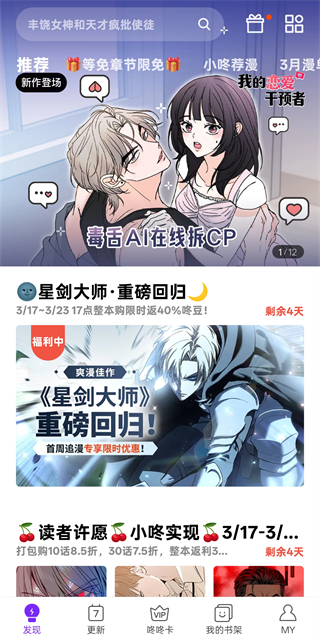 用了三个月咚漫,整体感觉还不错。界面设计简洁清爽,分类清晰,找漫画很方便。最大的亮点是韩漫资源特别丰富,很多独家连载作品在其他平台看不到,更新速度也快,基本能跟上韩国原版进度。