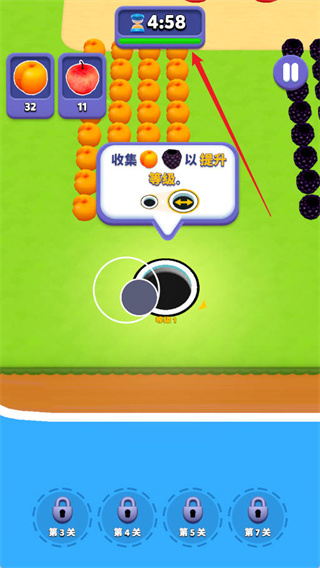 3、通过不断成长壮大黑洞,完成关卡设定的体积要求或指定任务,即可顺利通关;