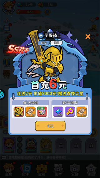 3、开局使用6元代金券可用获取SSR+圣殿骑士和专属装备。