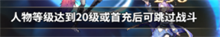 过完新手引导之后建议氪个6元的首充,充值之后便可以跳过战斗,方便前期进行推图。如果有耐心的话也可以慢慢等到20级即可跳过战斗。