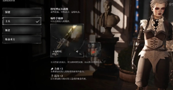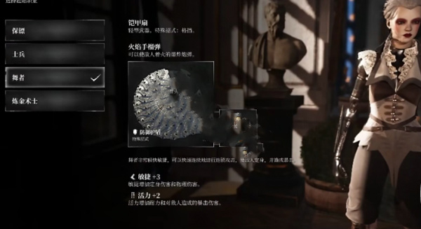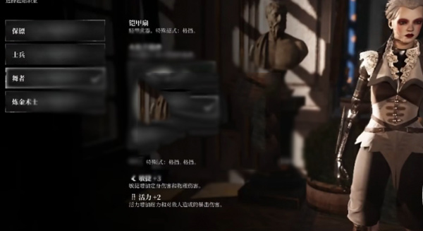 最好的起始课程是舞蹈演员,均衡的全才。该职业配备了中型武器,确保快速攻击和爆炸性射弹的伤害(游戏中最好的弹药)。在必要的时候,它还能提供速度和敏捷,并在初始阶段增加一点活力。耐力的小幅度提升也让宙斯盾很快恢复了耐力。攻击属性也是值得的,尤其是+5的固定,给你一点机会更快的干掉一个敌人。这个职业没有防御属性,但是你可以依靠装甲粉丝的特殊移动来阻挡敌人,依靠神盾的快速闪避和快速冷却来快速恢复活力。