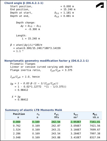 第10版引入了针对非棱柱无支撑长度的钢结构构件侧向扭转屈曲(LTB)计算的新精细计算方法。为了计算弹性LTB载荷比,已实施了D6.6条中的方法A和方法B。