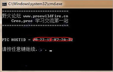 7、运行补丁包里“获取网卡号.bat”,得到本机网卡号如下图(注意网卡号是由A~F,数字0~9组成的)