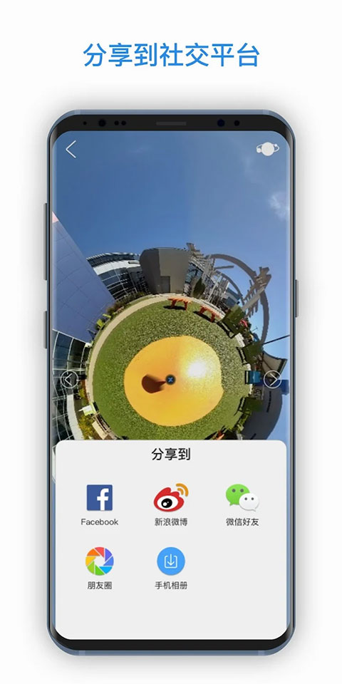 支持全景视频/照片快速导出至本地相册,并直接分享至社交平台,提升内容传播效率。