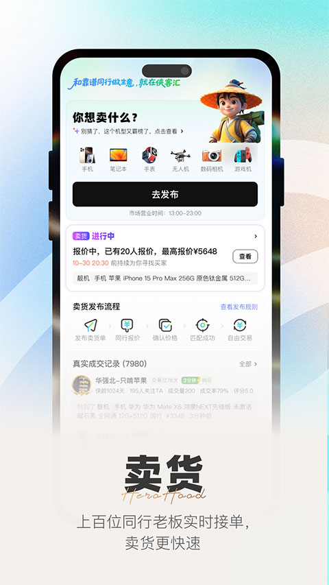侠客汇app是由转转官方推出的一款专为二手B2B贸易设计的移动应用,旨在为商家提供高效、安全、便捷的交易环境。它汇聚了海量经过实人认证的同行资源,涵盖电子产品、时尚服装、家居日用品等多个品类,满足多样化的二手购物需求。通过智能匹配算法,侠客汇app能够精准对接买卖双方的需求,提升交易成功率。此外,该应用还提供强大的验机体系,确保商品品质可靠,并配备报价单管理、订单跟踪等实用工具,简化交易流程。