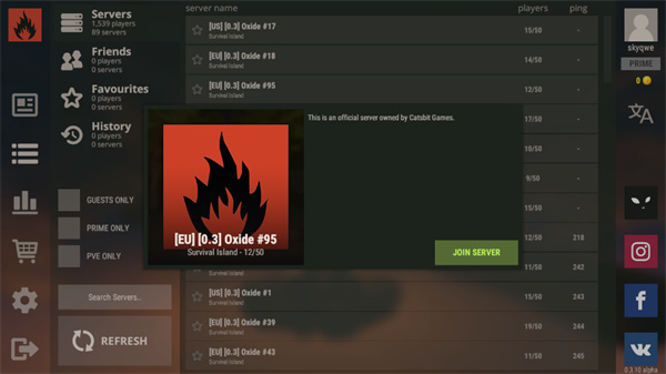 1、打开腐蚀生存手游,游戏需加速器启动,选择一个房间;