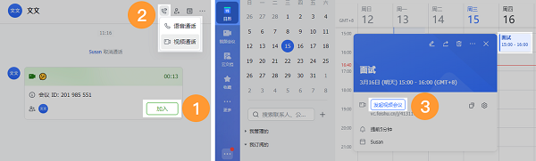 视频会议让远程协作像现场开会一样自如。视频会议与文档、聊天、日历深度整合,会中能共享文档,实时编辑、评论;会后自动生成记录,便于回看。